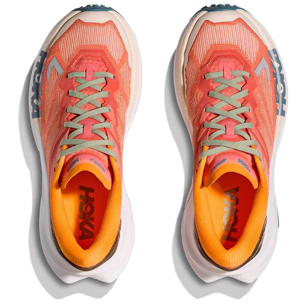 Calling all trail racing fiends, gravel grinders, and 100-milers. There’s a new trail titan in town. Built for long-haul efforts, the Mafate X delivers supreme plushness with a dual-density, premium foam chassis, PEBA top layer, and a pop of propulsion thanks to our forked carbon fiber plate. We’ve implemented an ultralight woven upper that allows for easy drainage and Vibram® Megagrip outsole with pod-like cutouts to ensure a smooth ride over variable terrain.