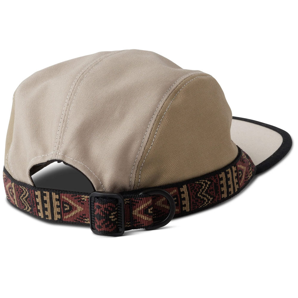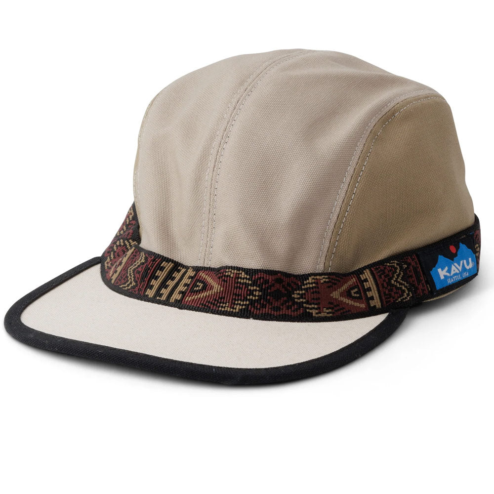 This includes the beefy nylon tubular webbing with 4,000lbs breaking point, KAVU d-ring adjustment, five 43-stitch bar tacks, tough polyurethane bill, heat laminated underbill, and four panel design secured with 1" grosgrain covered internal seams.