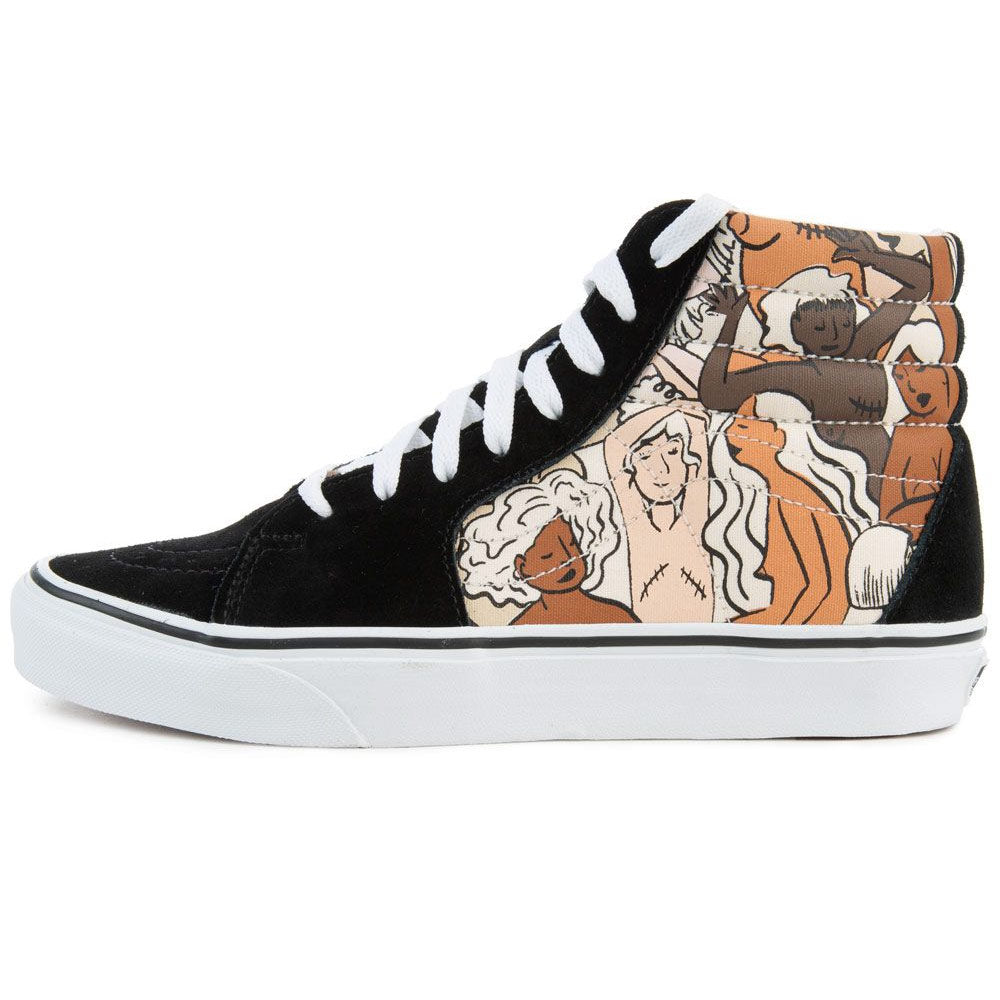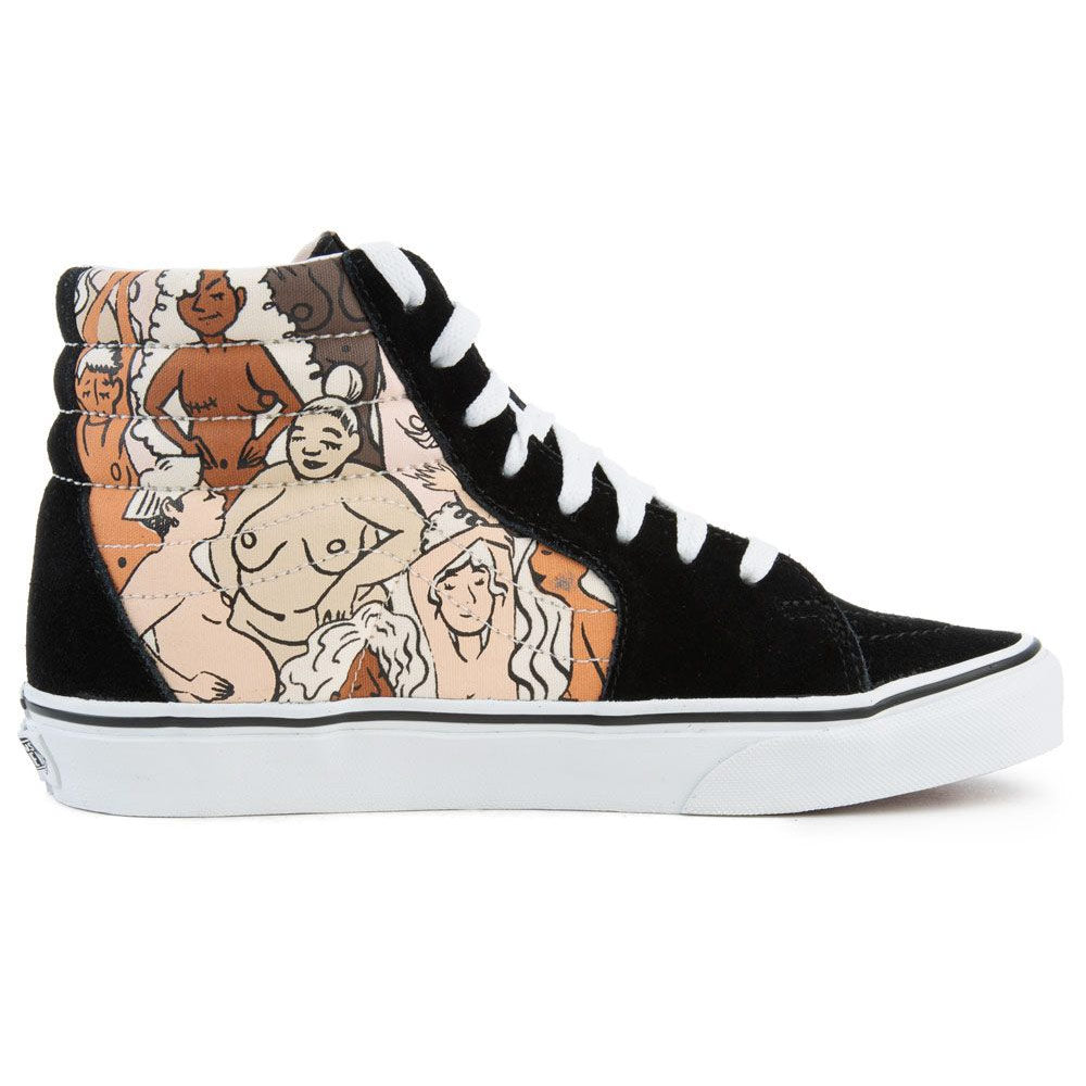 Vans has created a Breast Cancer Awareness collection to bring more awareness to this disease. The women's SK8-Hi (Breast Cancer Awareness) shoes feature a canvas upper, prints on the sides, and a classic Vans logo on the tongue.