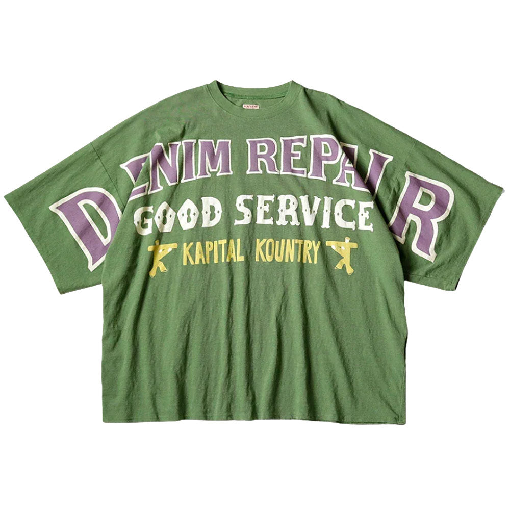 Kapital | 18.5/- Jersey Huge-T-Shirts (Denim Repair) 'Green'