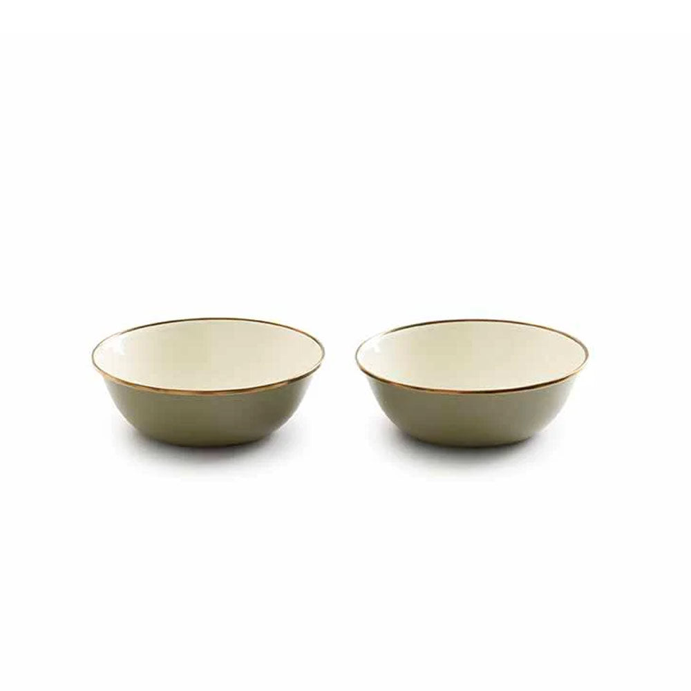 Barebones | Enamel 2-Tone Bowl Set 'Olive Drab'