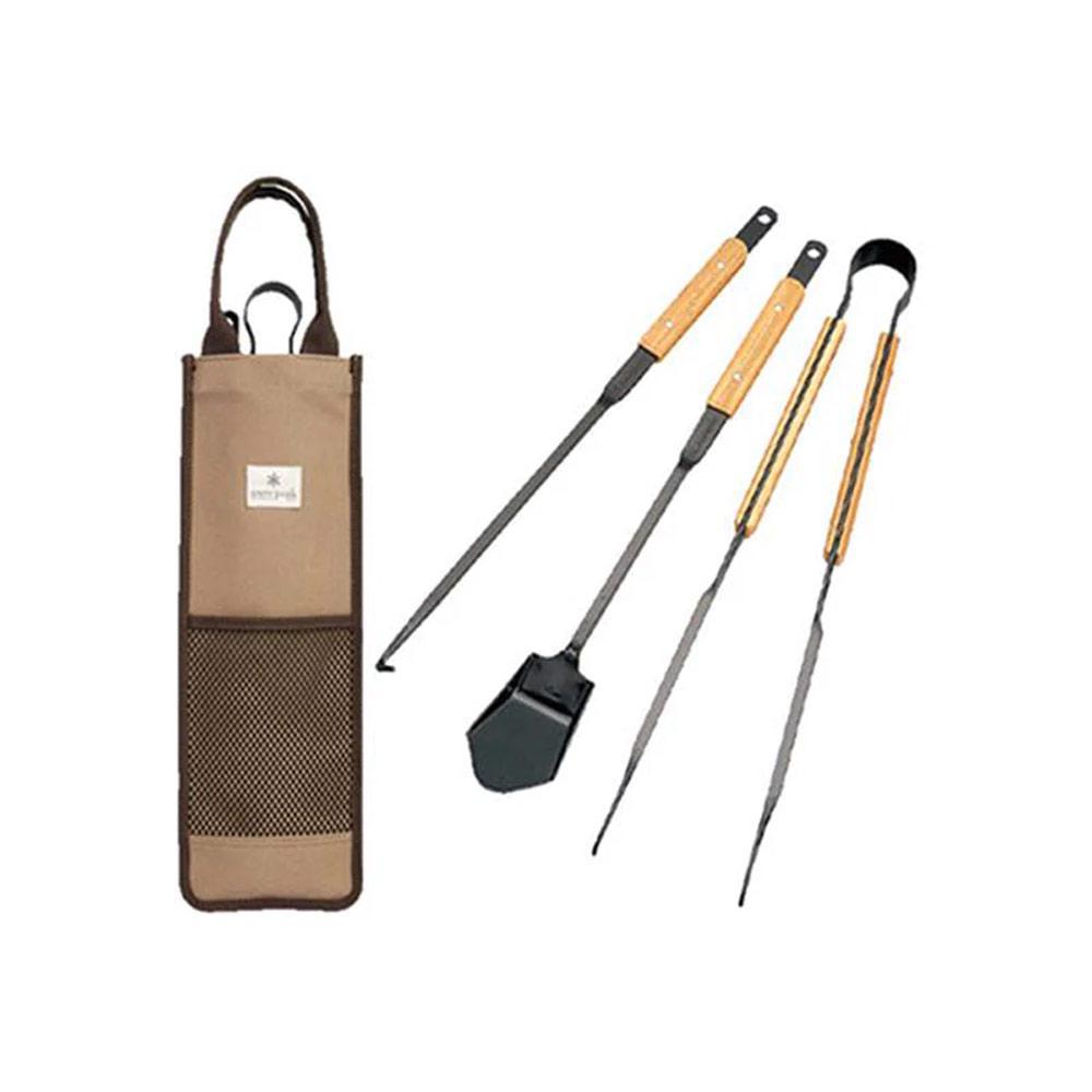 Designed in Japan, the Fire Tool Set is made of sturdy steel with stylish bamboo handles. Use the Fire Tool Set to safely tend the fire and coals. The set includes a Shovel, Poker and Fire Tongs that fit snugly in a canvas case.