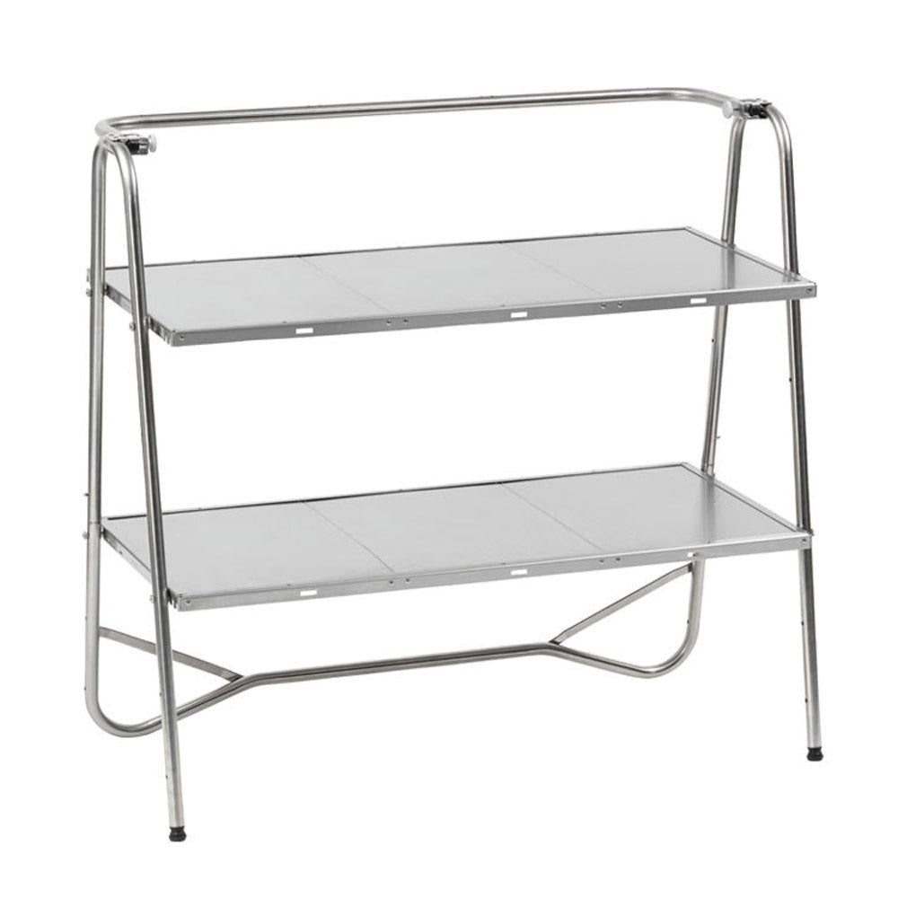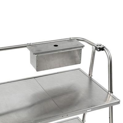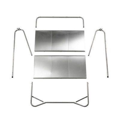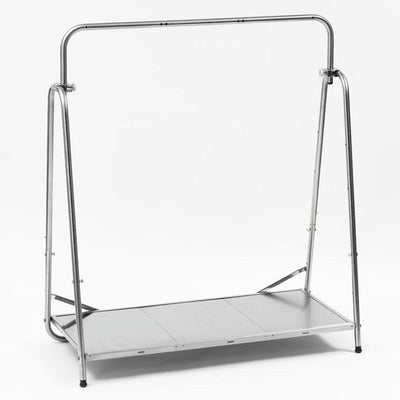 The Stainless Steel Kitchen Table is a Japanese-designed, sturdy modular shelf. Use it for additional storage at home or in your campsite. The Stainless Steel Kitchen Table features multi-level shelving, system hanger and tabletop that seamlessly integrates with the Iron Grill Table System. When not in use, the Stainless Steel Kitchen Table breaks down into several pieces for compact storage. Pair it with the IGT Four Unit Standing Set for an expansive and creative outdoor camp kitchen.