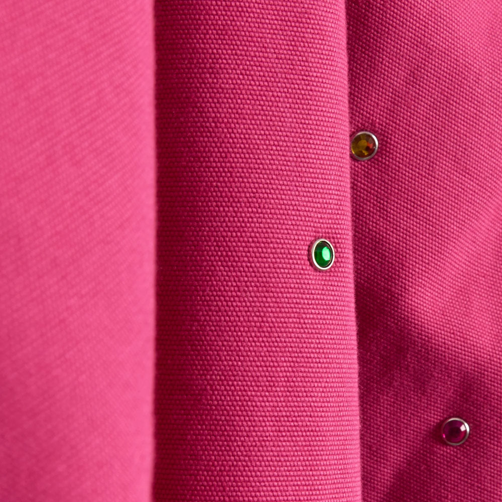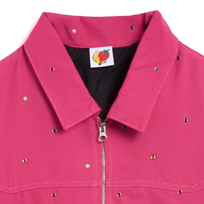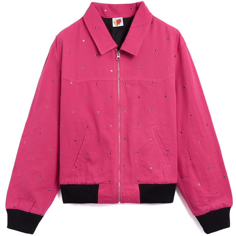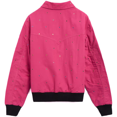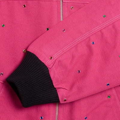 This durable insulated jacket features utilitarian pockets, fitted waist & wrists with a collar. The jacket fits slightly cropped and is finished with multi colored gem studs.
